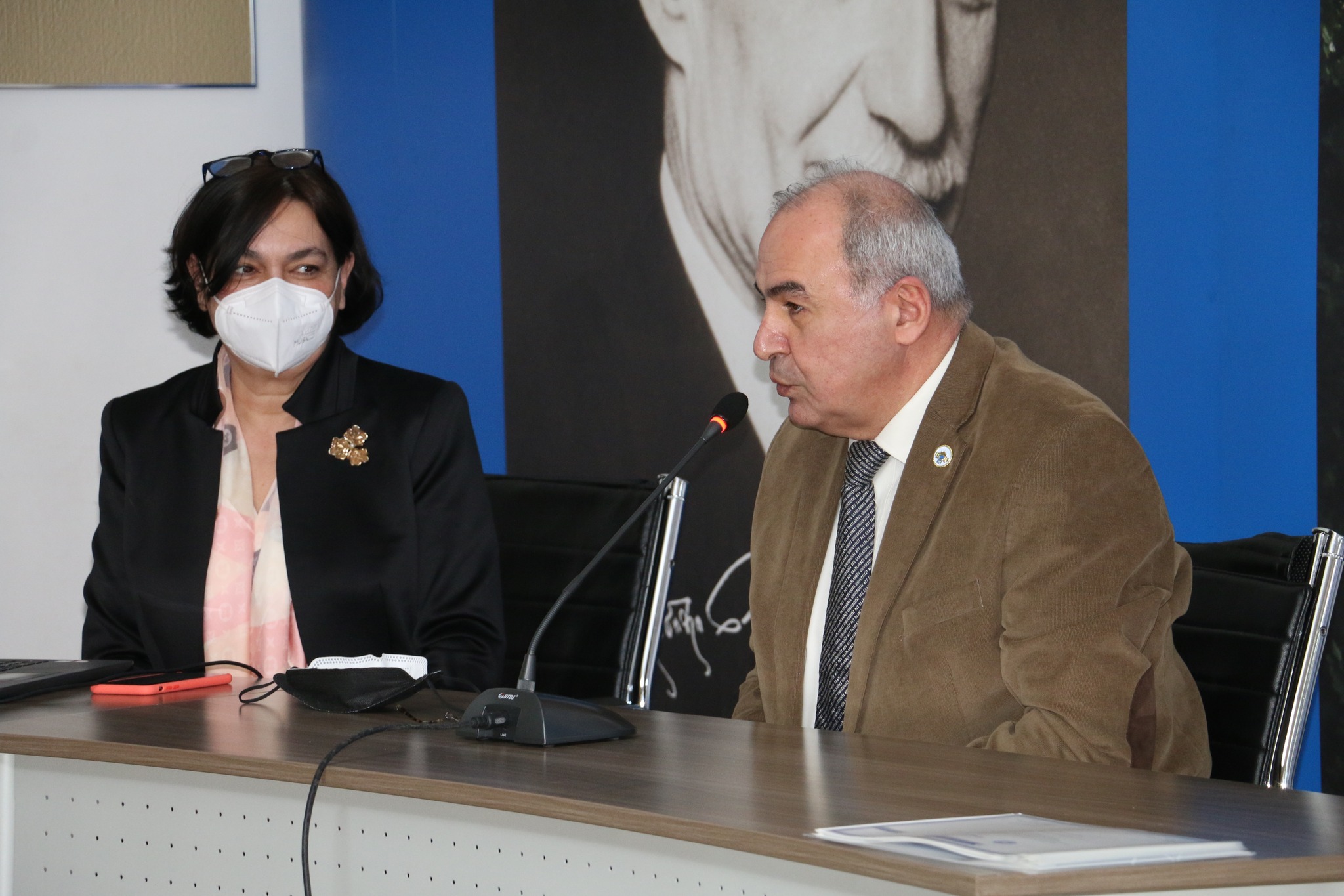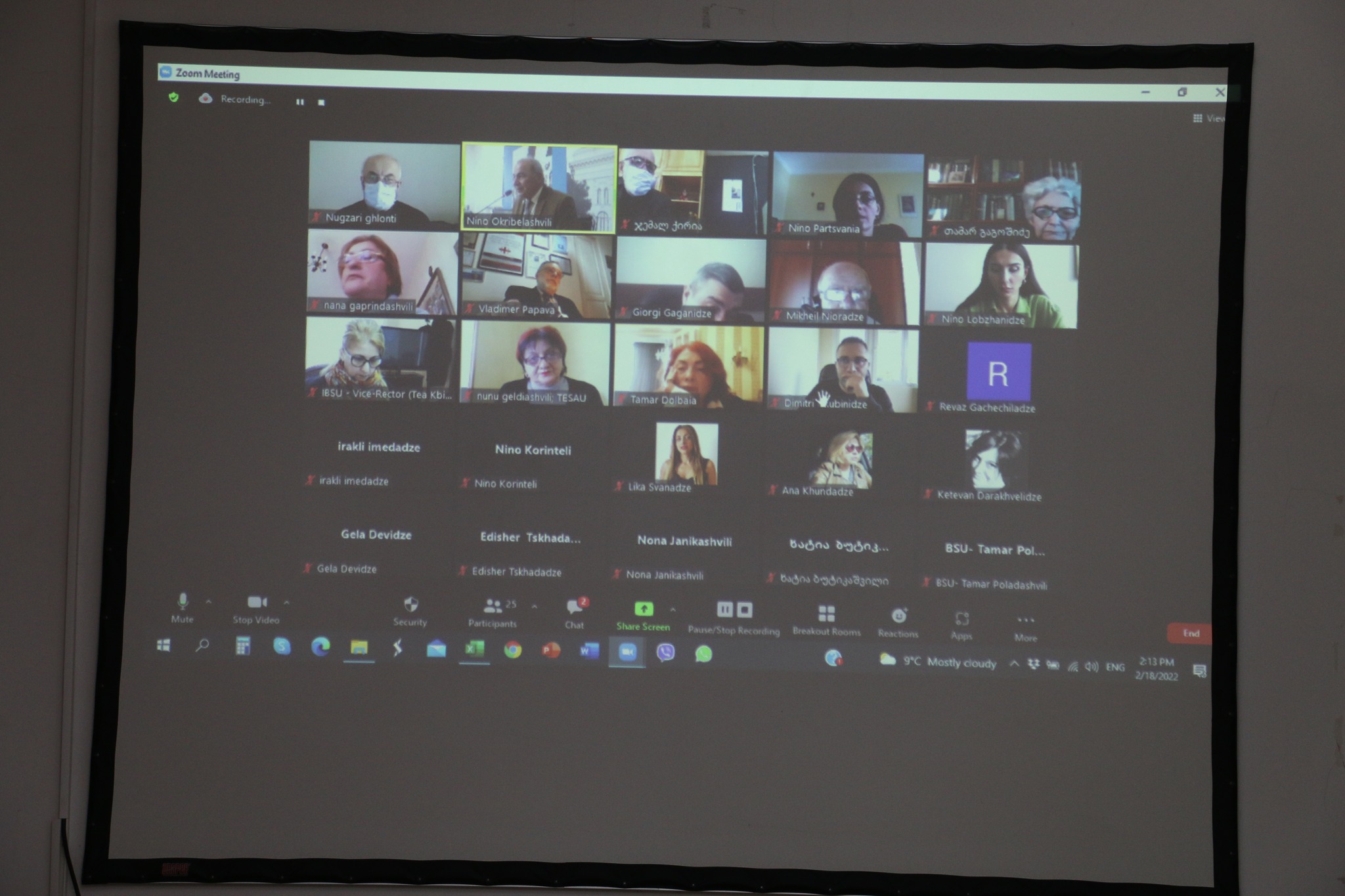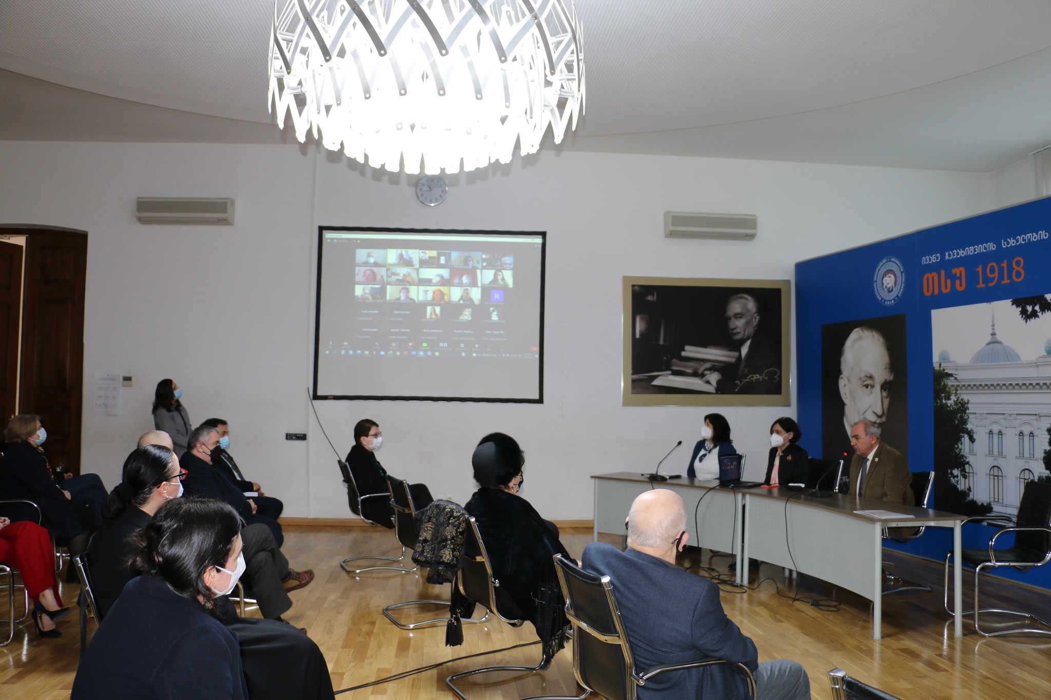On 19th of February, 2022 Ivane Javakhishvili Tbilisi State University hosted a meeting in order to disseminate the HERD project results - "Promoting the Development of Scientific Research in Georgian Higher Education Institutions" funded by the European Union within the framework of Erasmus + KA2. The presentation of the project was held by TSU Rector Giorgi Sharvashidze, Deputy Minister of Education and Science of Georgia Nunu Mitskevich, Director of Rustaveli National Scientific Foundation Jaba Samushia, Deputy Rector of TSU and Project Manager Nino Okribelashvili, Deputy Rector of TSU Nino GveneTadze. Scientists involved in the project were present as well. At the meeting, Giorgi Sharvashidze and Nino Okribelashvili gave signs of gratitude to the scientists involved in the project. The project, in which 12 Georgian universities are involved, is led by Ivane Javakhishvili State University of Tbilisi.